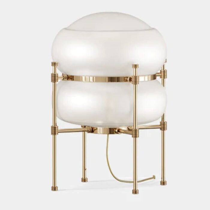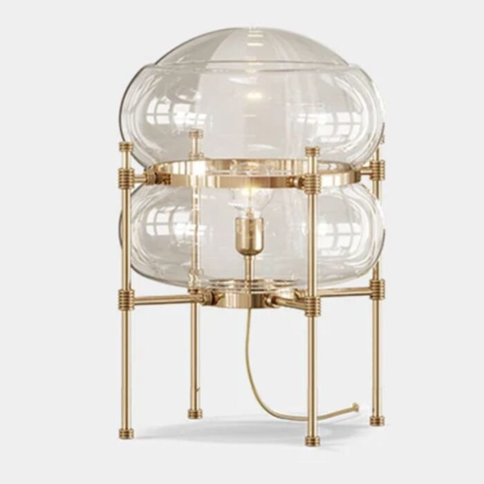 At the heart of its beauty lies a delicate interplay between material and illumination. The soft glow of the bulb, cradled within a sleek glass enclosure, reflects and dances across the gold-plated brass frame, creating a mesmerizing display of light and shadow. This synergy turns any room into a captivating, ambient environment.
