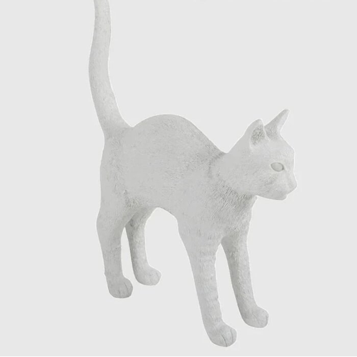 Crafted from premium resin with a durable iron body, this cat-shaped lamp features clean lines and plain dyed technics for a minimalist yet artistic look. Its sleek and compact form fits seamlessly into any contemporary or modern decor style.