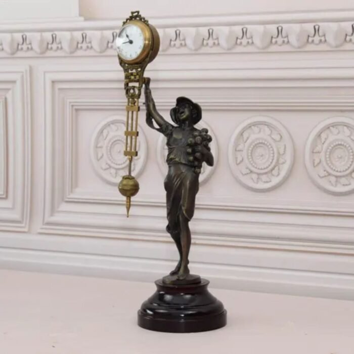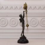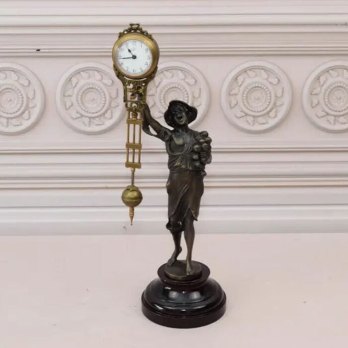 Crafted with intricate detail, the woman figure at the heart of this timepiece serves as a stunning representation of grace and serenity, adding a touch of feminine charm to any space. The clock’s graceful curves and organic shapes pay homage to the Art Nouveau style, known for its celebration of nature and beauty.