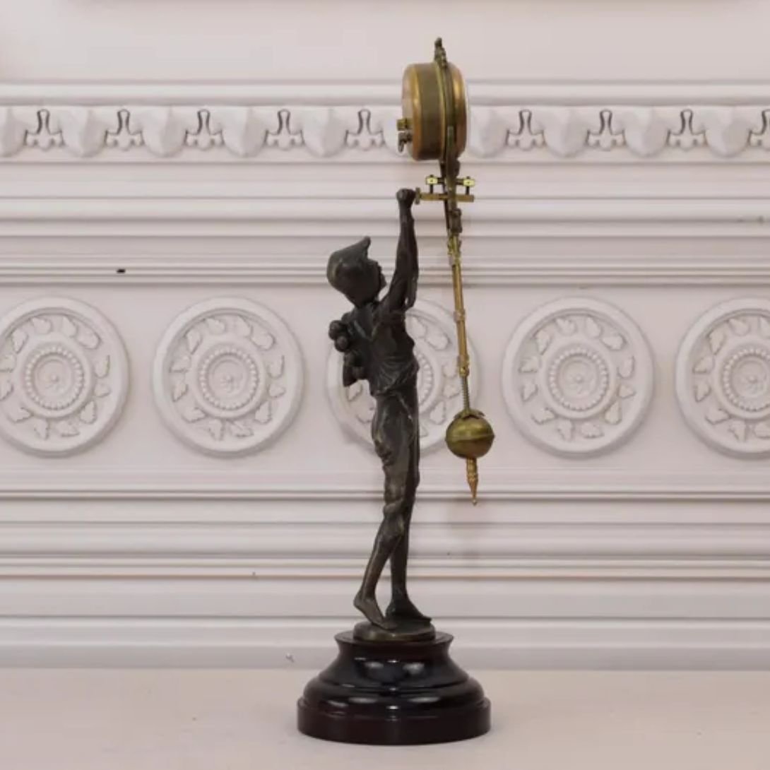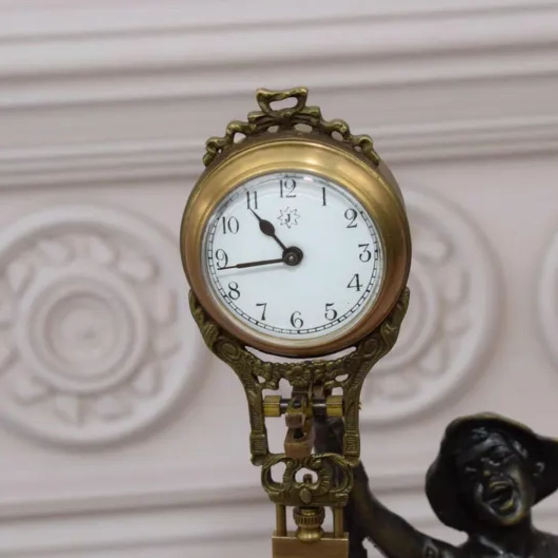 The fusion of bronze and metal creates a striking visual contrast, balancing the warmth of bronze with the contemporary flair of metal, making this clock a unique artistic composition.