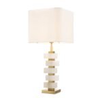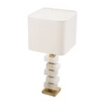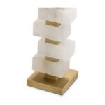 • Materials: Antique brass finish, alabaster blocks, off-white shade