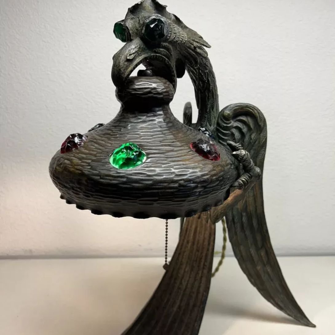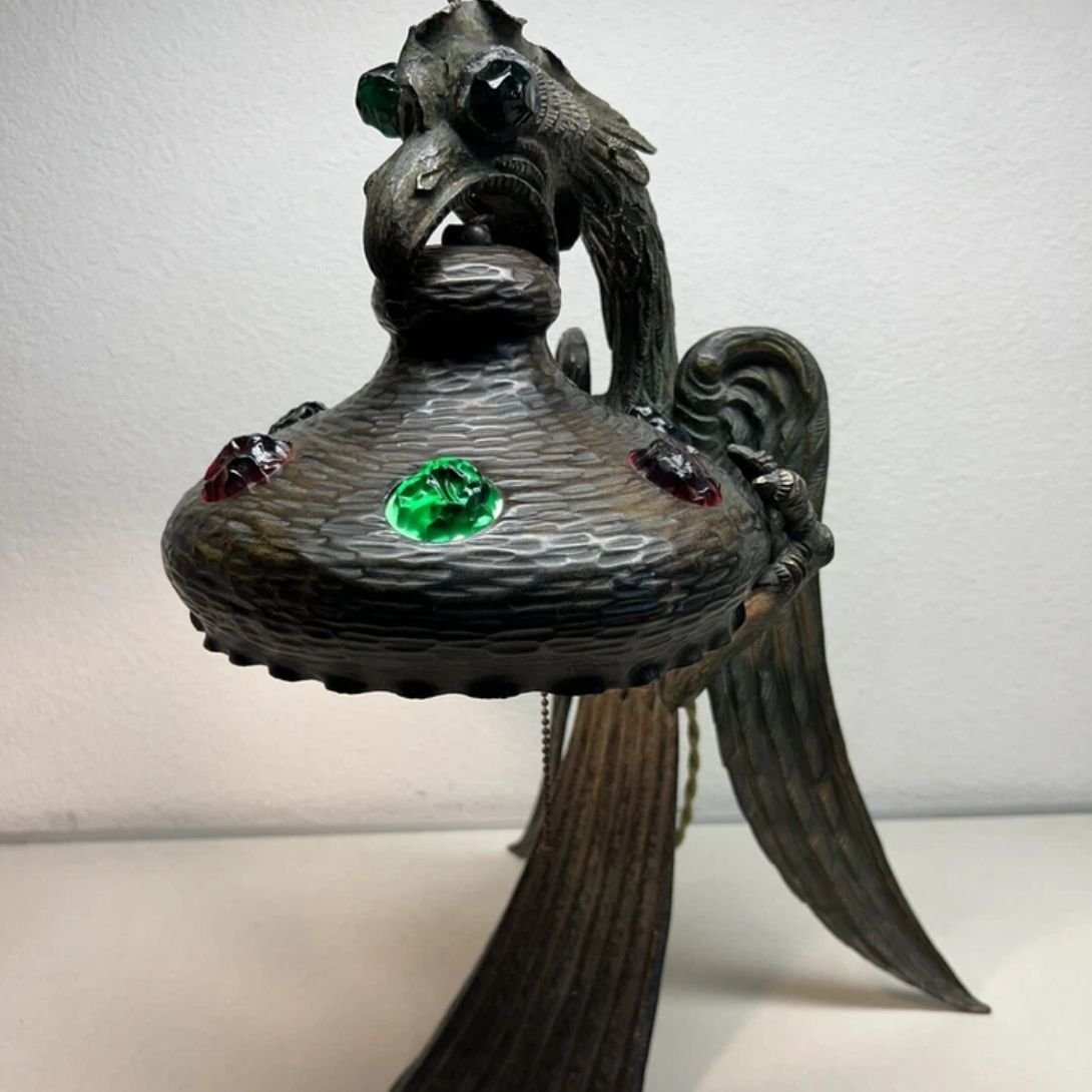 This jeweled griffon lamp isn’t just lighting—it’s a piece of history and fantasy fused in metal and glass. A must-have for admirers of mythical beasts, Art Nouveau art, or Austrian antique decor.