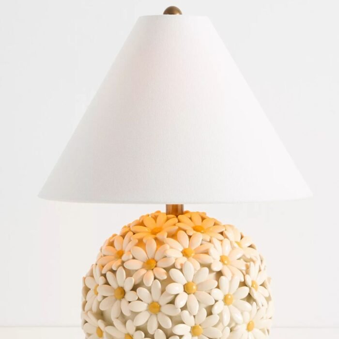 From its floral-inspired base to its soft linen shade, every detail of this lamp has been carefully designed to bring texture and charm to your home.
