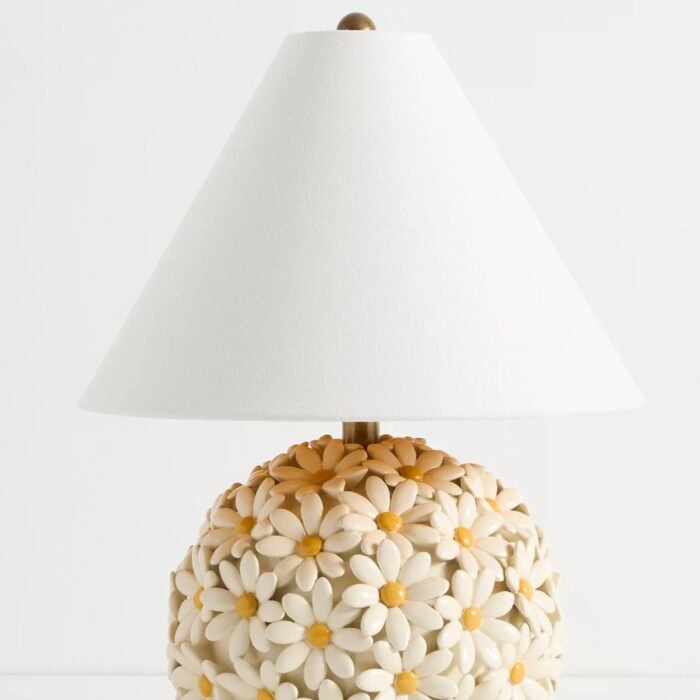 The Aster Table Lamp brings a playful elegance to your space with its resin base crafted to resemble delicate daisies. Topped with a classic linen shade, it blends botanical beauty with timeless functionality—perfect for a bedroom, living room, or reading nook.