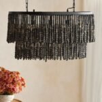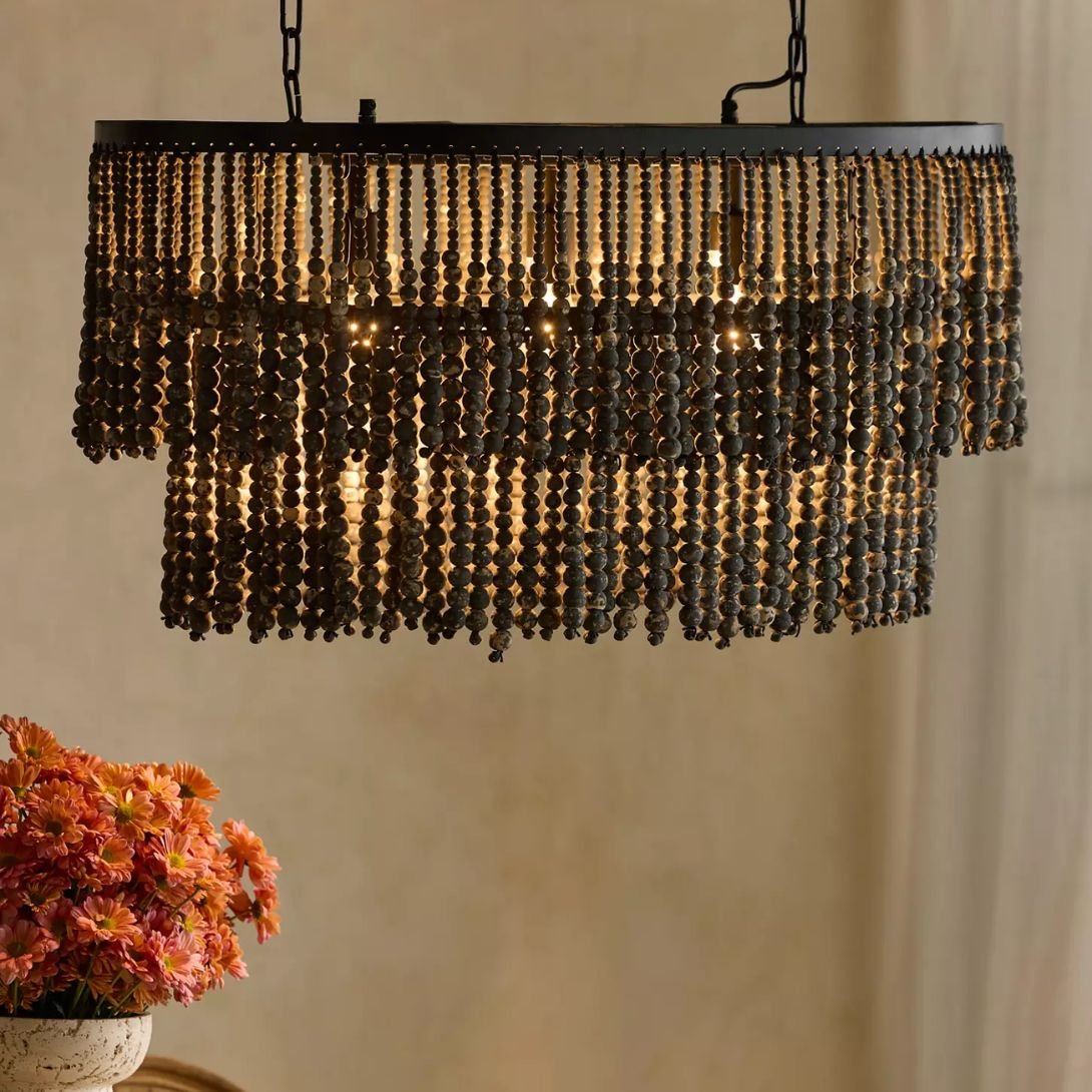 Make a stunning statement with this handcrafted mango wood bead chandelier, designed exclusively for terrain. Featuring cascading strands of natural wood beads suspended from an iron frame, this piece brings earthy sophistication and artistic texture to any room.