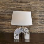 • Materials: Veined Onyx, Metal, Steel, Cotton Shade