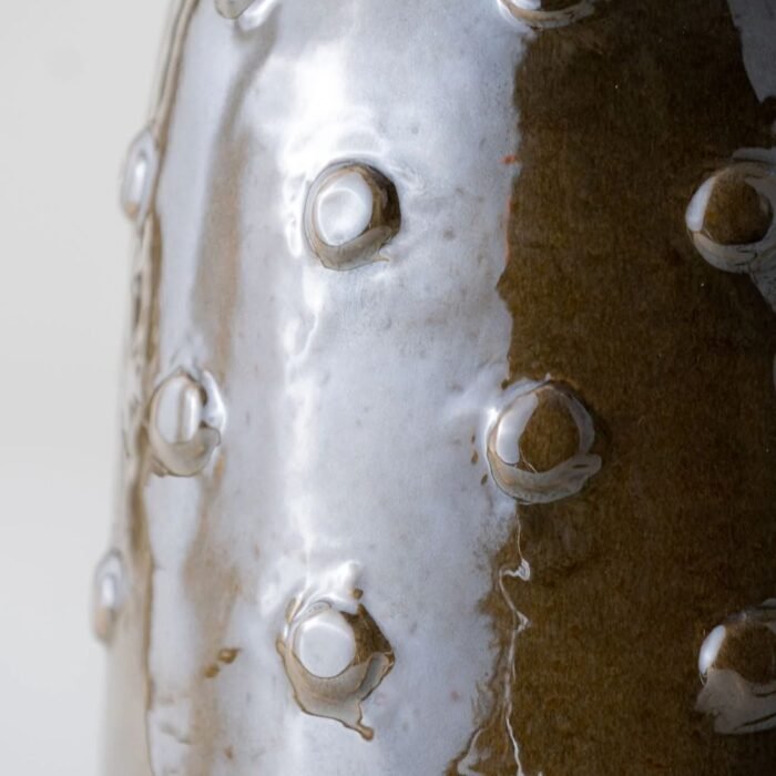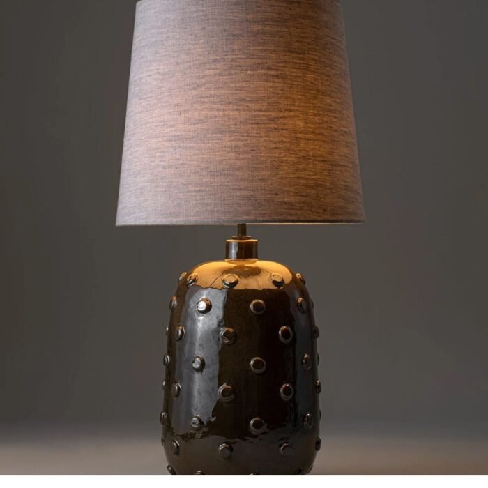 Inspired by ancient Mesopotamian ceramics, the Button Table Lamp merges historical artistry with modern design. Its sculptural ceramic base is finished with a rich glaze and adorned with scattered, irregular studs—creating a tactile, handcrafted surface full of visual intrigue. Each lamp is a unique statement piece that brings texture and character into any setting.