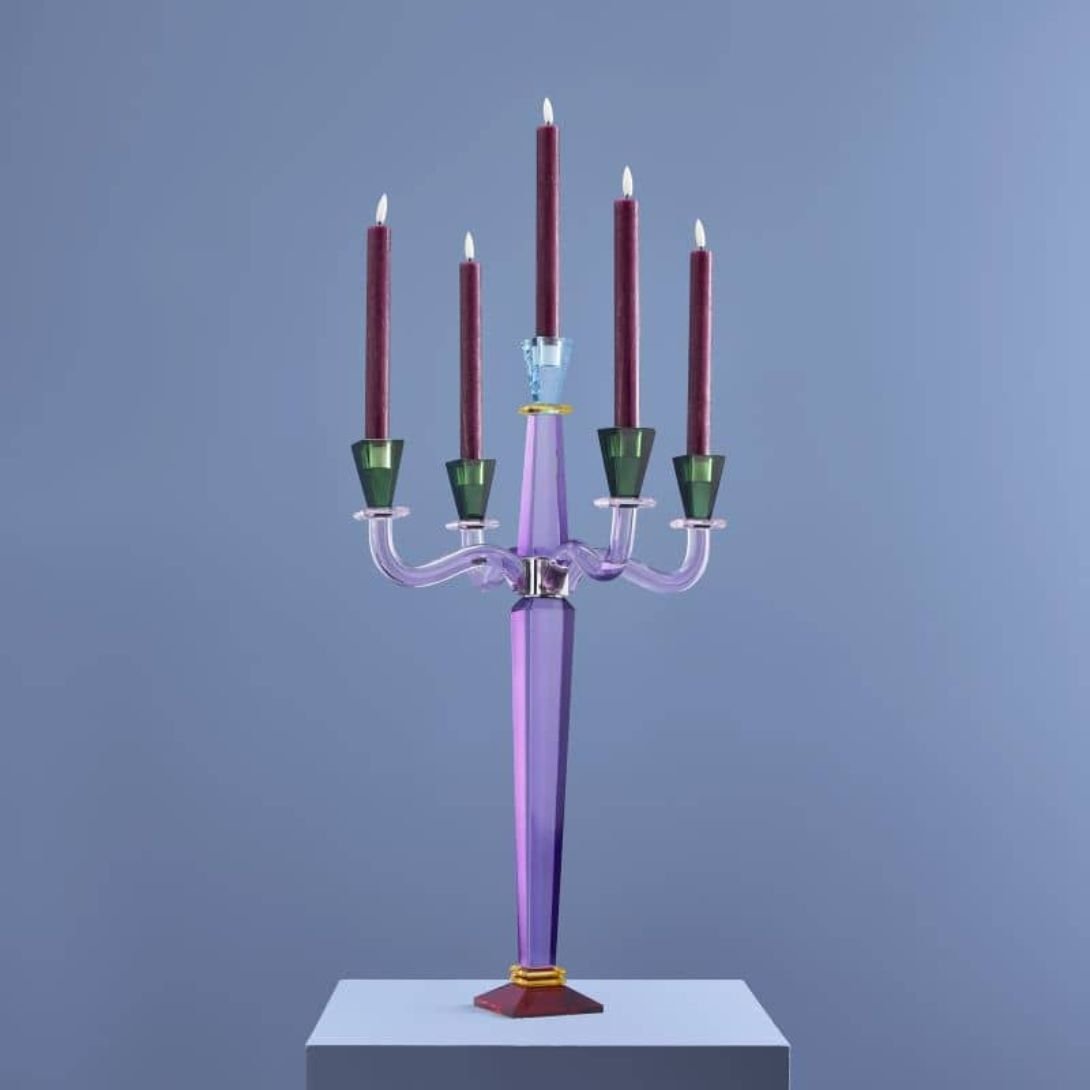 Home HOME DECORATION CANDLE HOLDER FANCY CRYSTAL 5-FLAME GLASS PURPLE