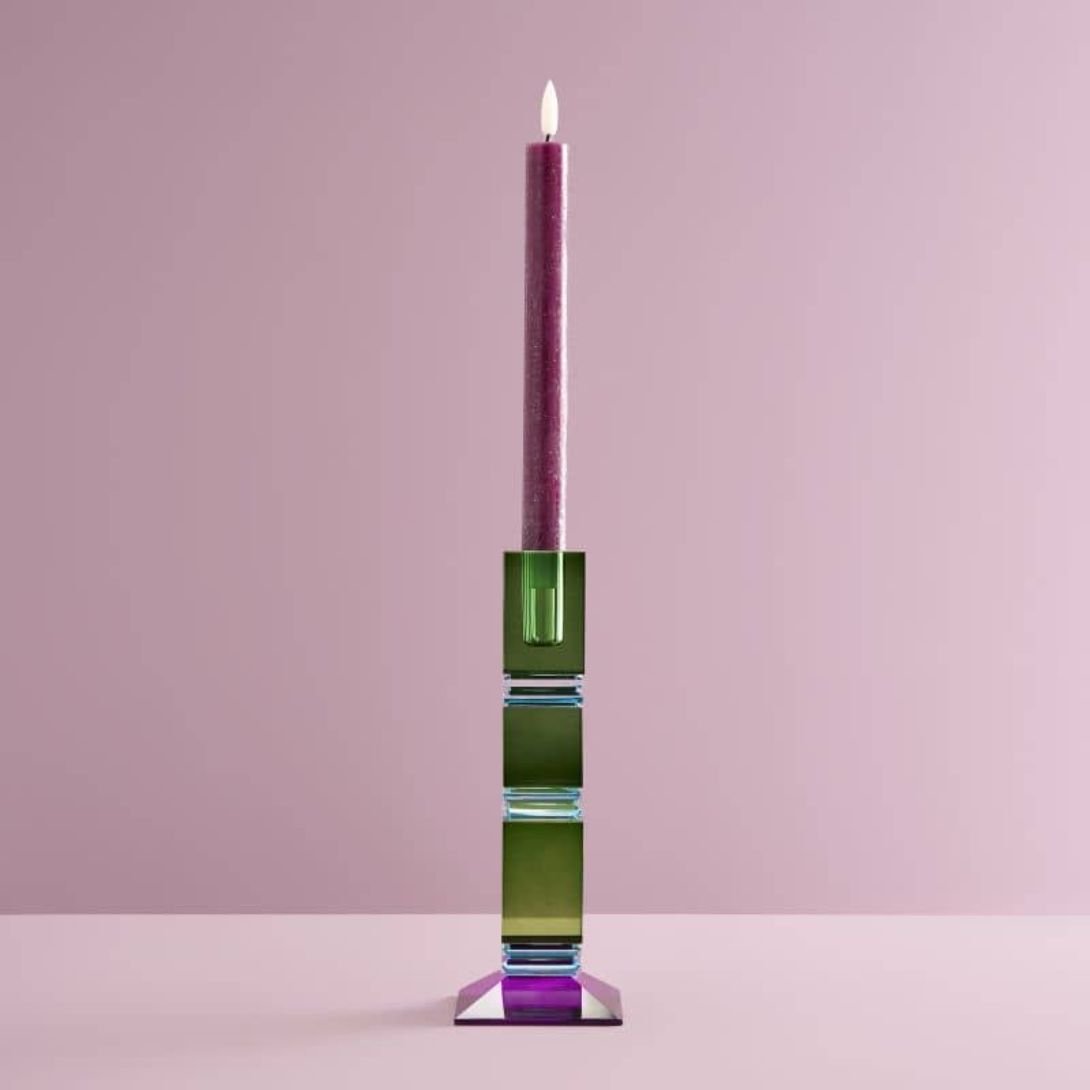 Crafted from high-quality glass, this candle holder features a stunning green color that instantly captures attention. The bold, vibrant hue adds a pop of color while the translucent glass softly diffuses candlelight, creating a warm, inviting glow. It’s a beautiful balance of boldness and elegance, making it a standout in any décor scheme.