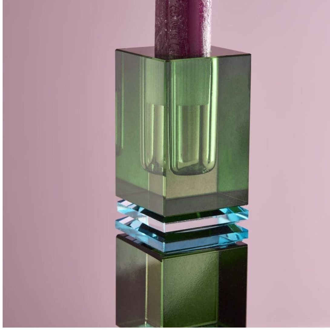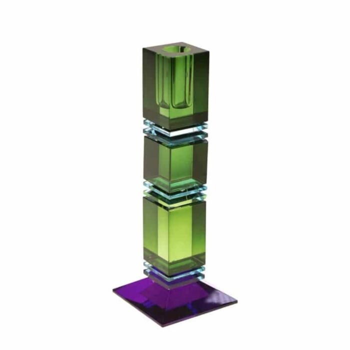 CANDLE HOLDER FANCY CRYSTAL GREEN SQUARE GLASS
