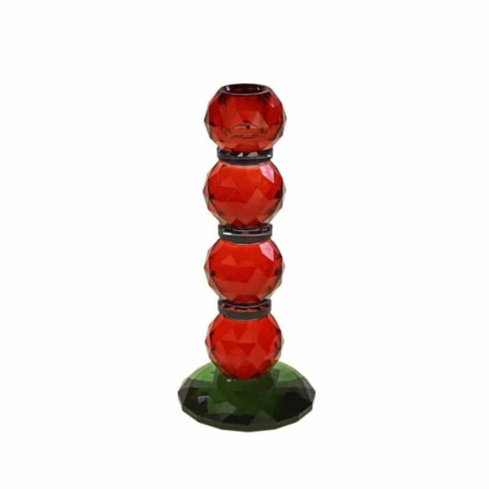 CANDLE HOLDER FANCY CRYSTAL RED ROUND GLASS