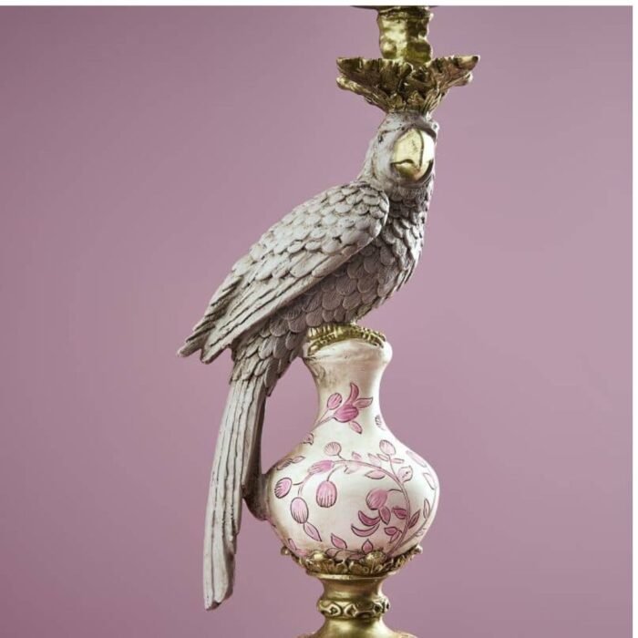 Crafted from durable polyresin, this decorative candlestick is carefully designed with intricate detailing, ensuring a lifelike parrot perched gracefully atop the base. The smooth finish and fine hand-painted touches make it a unique and eye-catching addition to any space.