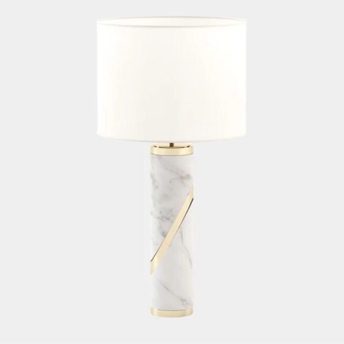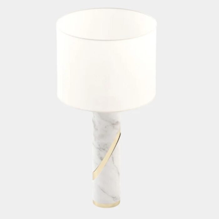 The marble structure is detailed in golden metal, offering a luxe contrast that enhances the lamp’s overall modern aesthetic. These metallic touches bring warmth and a hint of glamour, making the lamp ideal for upscale interiors.