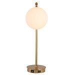 Its compact footprint makes it ideal for small spaces, while the glowing orb-shaped shade offers soft, diffused light—perfect for reading, working, or ambient mood lighting. The warm brass finish adds a touch of timeless luxury, making it equally suited to modern, transitional, or retro-inspired interiors.