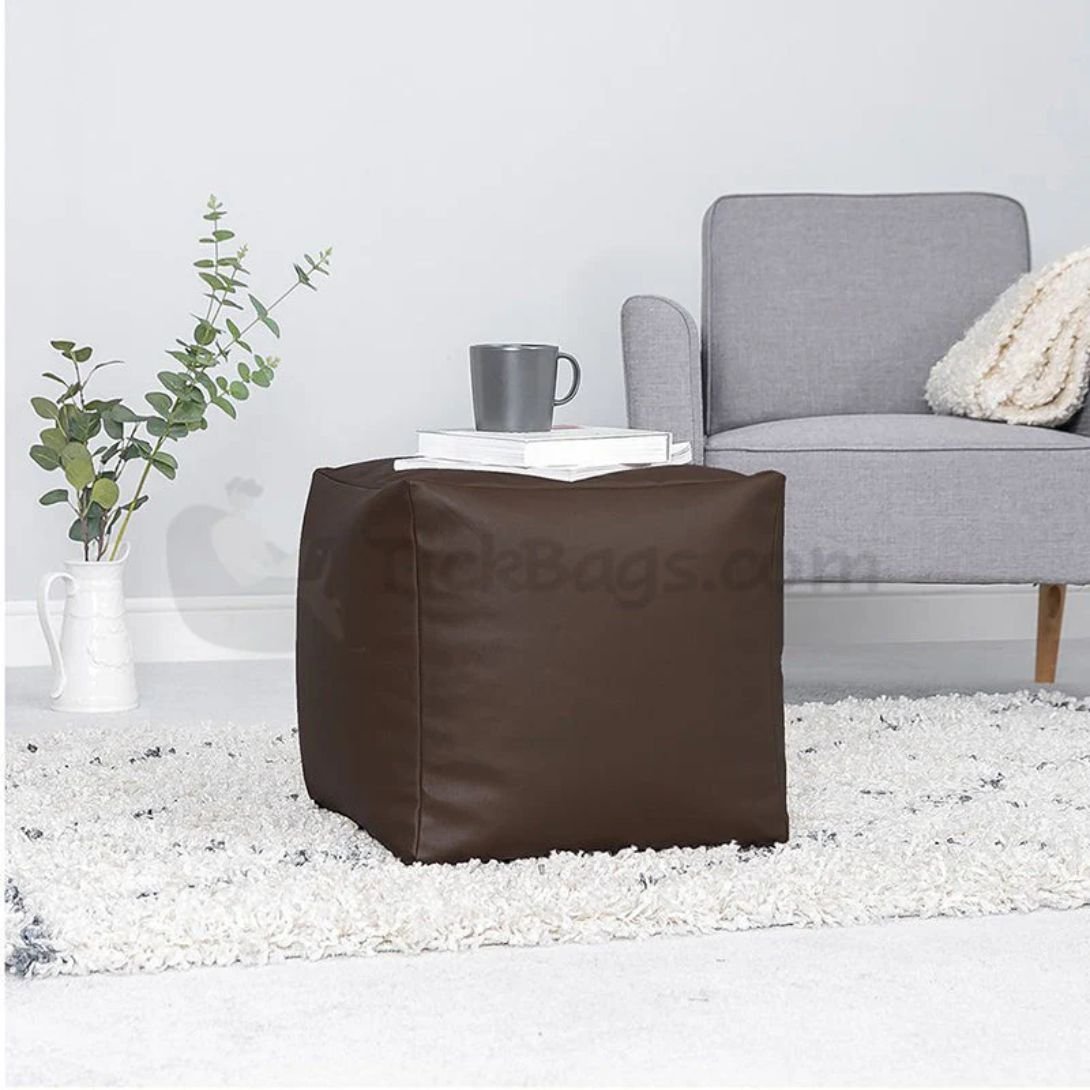 Home Ottomans GENUINE LEATHER CUBICAL POUFFE
