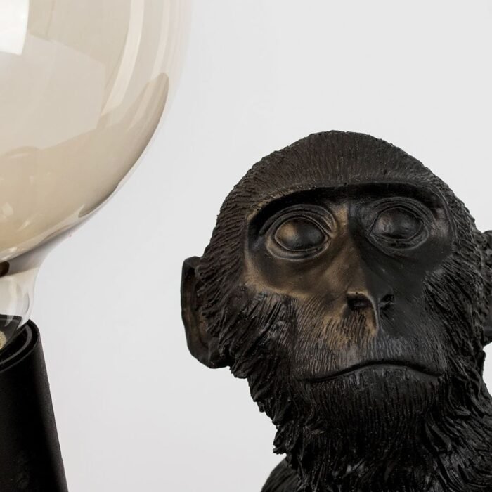 The monkey design adds a whimsical yet sophisticated touch, making the lamp a conversation starter and a bold statement piece in any room. Its black finish lends a sleek, versatile look that complements various decor styles.