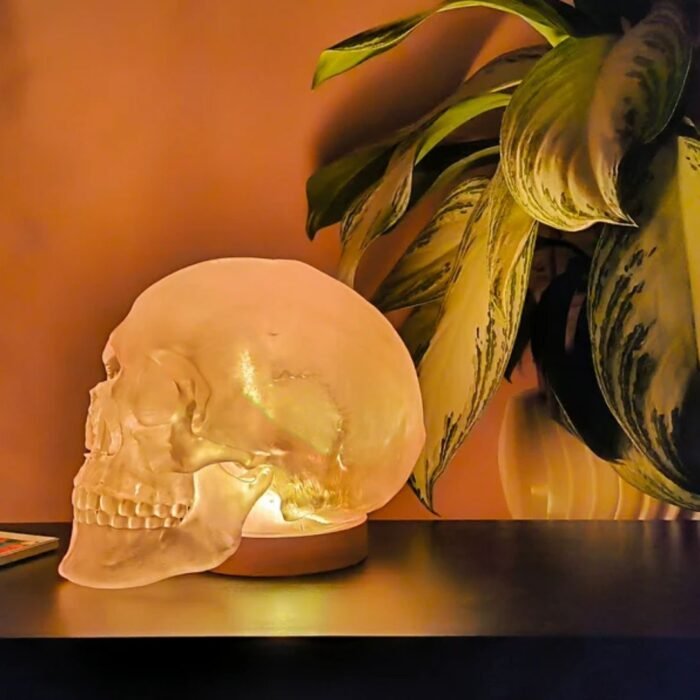 Illuminate your space with a touch of intrigue and anatomical charm with this 3D printed human skull lamp. Crafted using an SLA 3D printer and based on a real human skull scan, this unique piece blends modern technology with macabre elegance—perfect for lovers of gothic, medical, or alternative décor.