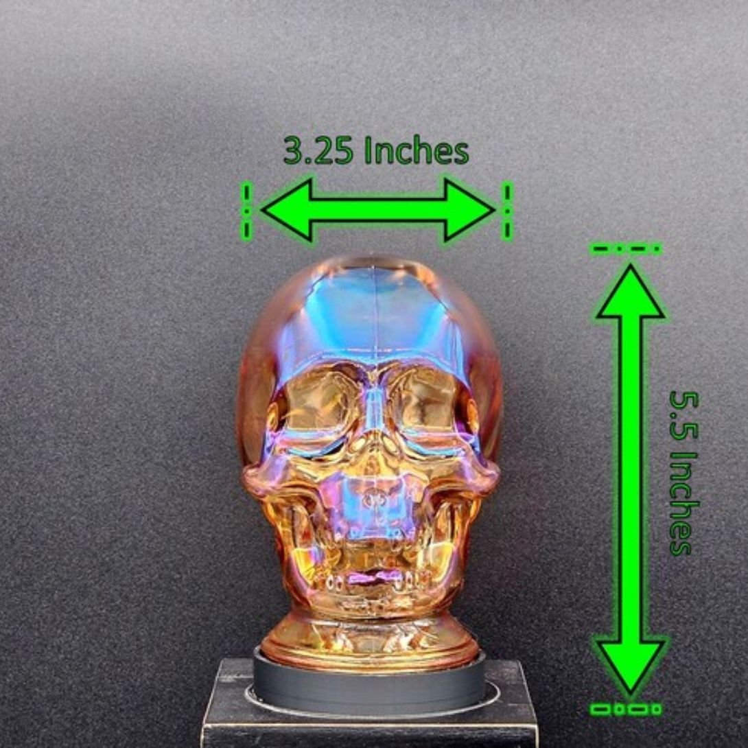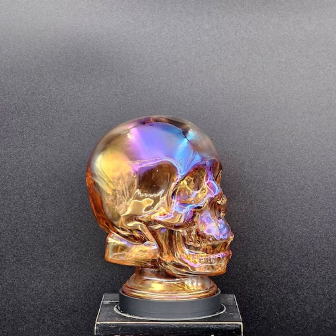 IRIDESCENT AMBER GLASS SKULL LIGHT COVER WITH CUSTOM 3D PRINTED BASE