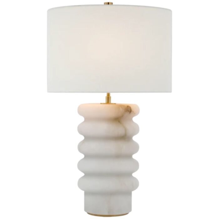 The Kelly Wearstler Onda Medium Table Lamp, from the Signature Collection at Touched Interiors, is a celebration of natural beauty and refined form. Crafted from luminous alabaster, the sculptural base radiates quiet sophistication, offering a unique interplay of translucency, veining, and organic texture. No two pieces are alike—each lamp is a one-of-a-kind work of art shaped by nature. As light passes through the stone, it casts a soft, ambient glow, adding warmth and elegance to any room.