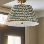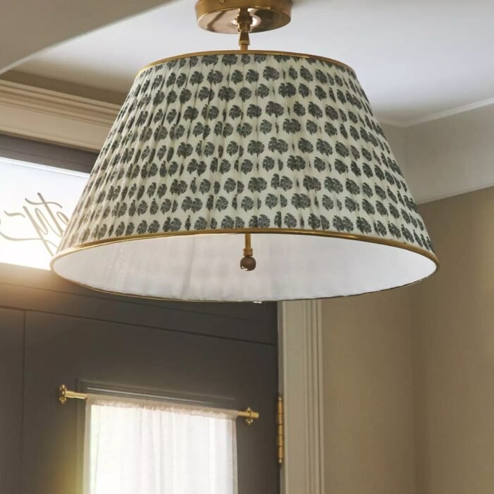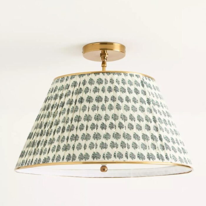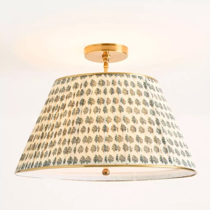 LEE RUCHED PRINTED BRASS FLUSH MOUNT PENDANT FLORAL BLOCK PRINT