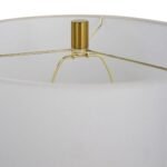 The lamp sits on a solid metal base for added stability and style, while the round hardback shade in crisp white linen diffuses light beautifully—creating a warm and welcoming glow. Ideal for use on nightstands, side tables, or in cozy reading nooks, the Lilian Table Lamp is as functional as it is visually striking.