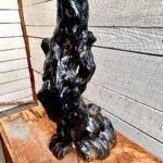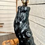 This Mid Century Black Ceramic Lamp brings a rustic yet elegant touch to any space with its unique tree trunk design. Handmade with care, this lamp features a black ceramic base adorned with gold detailing, capturing the essence of 1950s design while adding a contemporary twist to your decor.