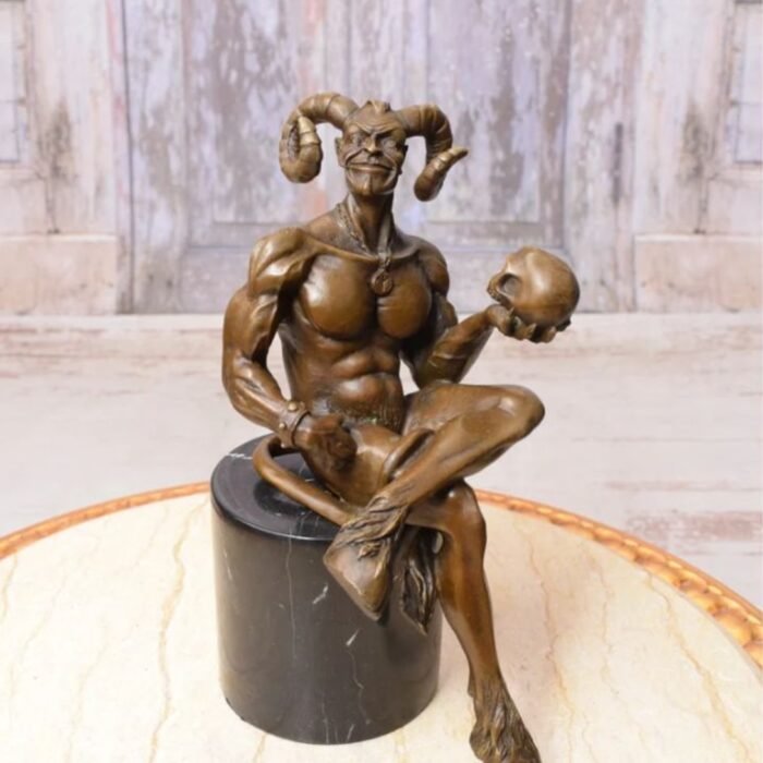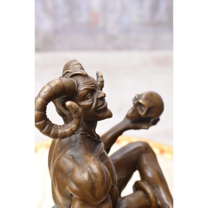 This Vintage Devil with Skull Bronze Sculpture is a stunning limited edition piece, featuring a striking Minotaur design mounted on a luxurious marble base. Intricately crafted, the sculpture embodies dark allure, showcasing a powerful Satan Hellboy figure, radiating an aura of mystery and strength.