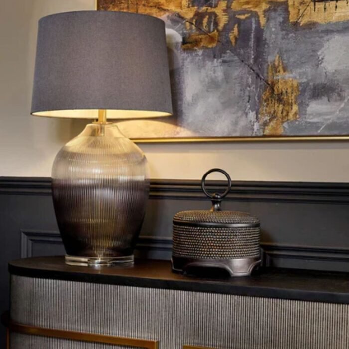 Designed to coordinate with shades of grey, white, and metallic finishes, this lamp helps create a cohesive and balanced decor.