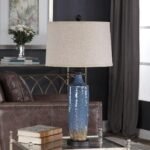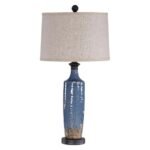 Add warmth, depth, and artisanal flair to your interior with the Keiichi Orren Table Lamp. With its beautifully textured ceramic base in deep blue, accented by dark khaki distressing and bronzed highlights, this lamp delivers a rich and rustic aesthetic that commands attention without overpowering your décor.