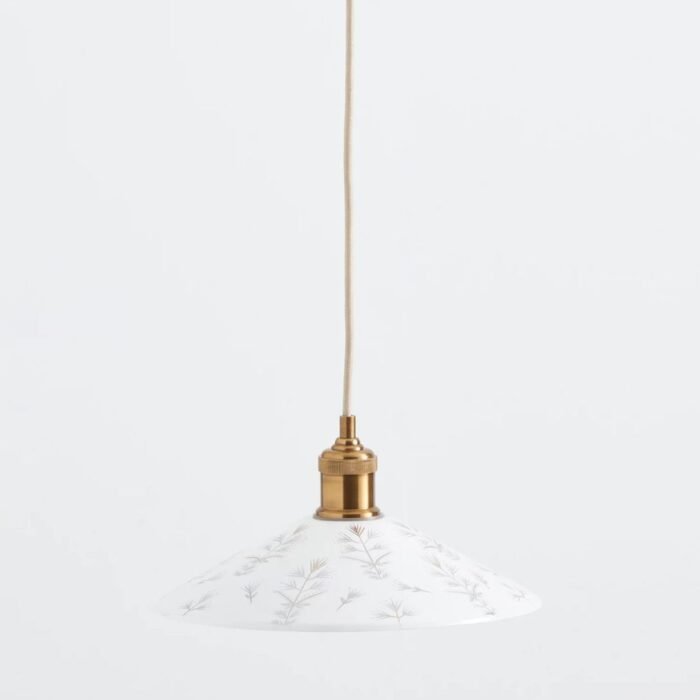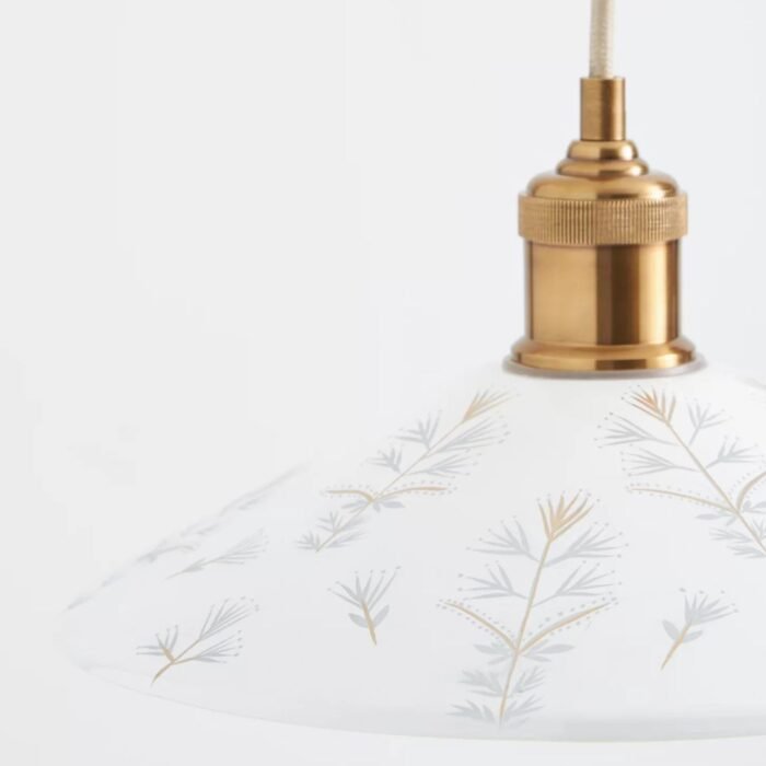 Perfectly petite and quietly elegant, this pendant light brings gentle charm to any space. Its glass shade features delicately etched leaves, creating a nature-inspired look that softly diffuses light. Whether suspended over a kitchen island, reading nook, or entryway, it adds a refined glow with artistic detail.
