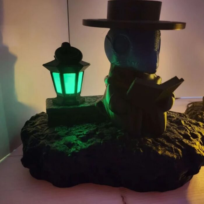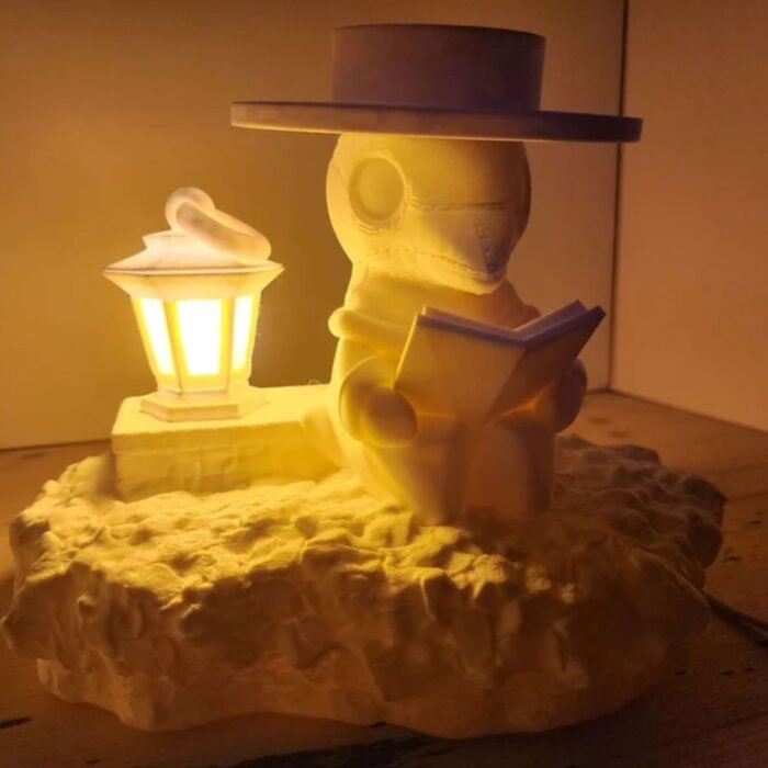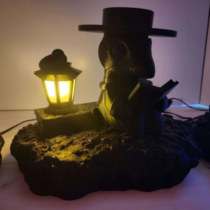 Add a touch of eerie elegance to your space with this 3D Printed Plague Doctor Lamp. Whether placed on a desk, bookshelf, or side table, it emits a relaxing soft light perfect for setting a calm, moody ambiance. Simply plug it into the wall, flip the switch, and let the doctor light your space in style.