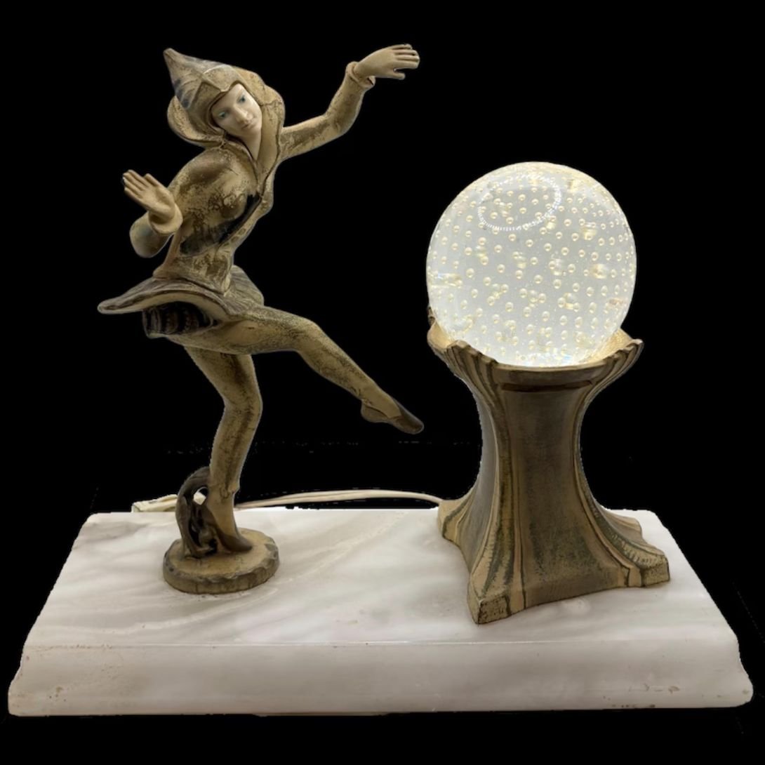 RARE 1920S ART DECO PIXIE HARLEQUIN DANCER LAMP
