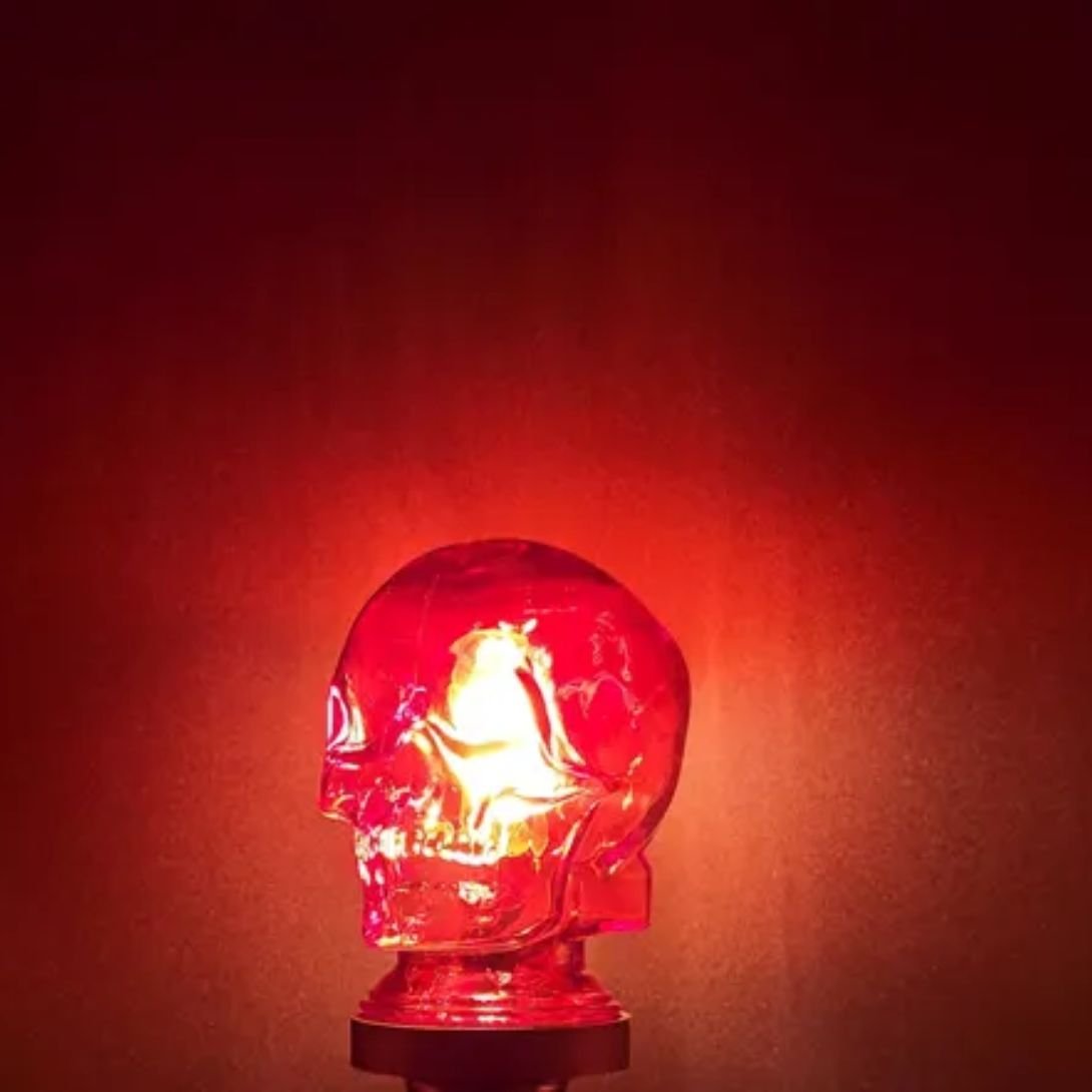 RED GLASS SKULL LIGHT COVER WITH CUSTOM 3D PRINTED BASE
