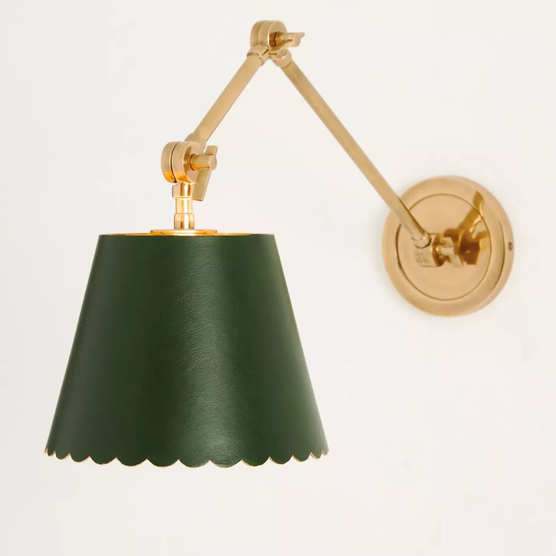 ROBERTA SCALLOPED LEATHER TASK SCONCE GREEN