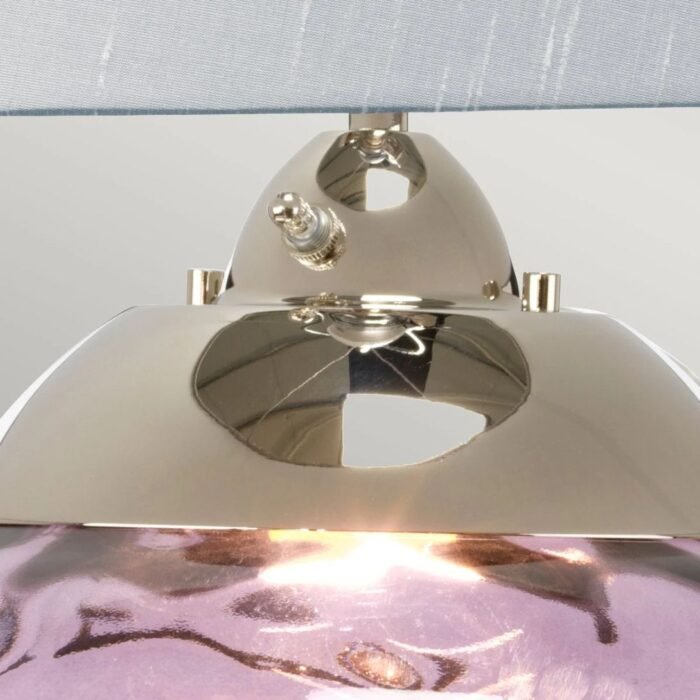 Elevate your space with the Quintiesse Samara Large Table Lamp in Plum, a stunning blend of classic design and contemporary sophistication. Featuring a textured blown glass base finished in rich plum and complemented by polished nickel metalwork, this lamp commands attention while seamlessly fitting into various décor styles.