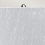 The lamp is topped with a hand-made fabric shade in elegant titanium silver, adding a layer of sophistication. The innovative 4-way switch allows independent control of the light sources between the shade and the glass base, offering versatile lighting options tailored to your needs—perfect for ambient glow or focused illumination.
