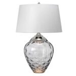 Bring understated elegance and versatile lighting into your home with the Quintiesse Samara Table Lamp in Smoke. Crafted with a textured blown glass base in a sophisticated smoke tone and paired with polished nickel metal-work, this lamp is a refined addition to any interior. The handmade Hepplewhite (light grey) fabric shade softens the overall design, adding a contemporary yet timeless appeal.