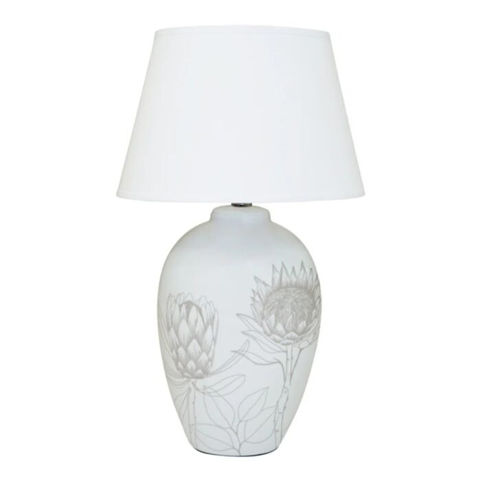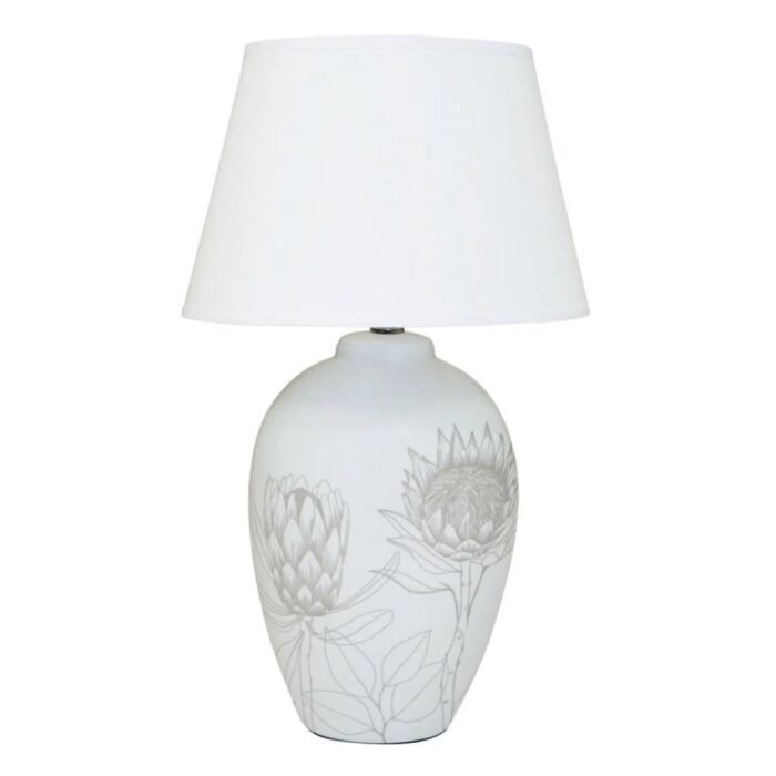 Illuminate your home with timeless charm using this beautifully designed table lamp. The base showcases intricate floral artwork crafted in durable resin, offering a delicate and sophisticated aesthetic. Complemented by a classic white linen shade, this lamp casts a soft, ambient glow that enhances its refined design while creating a calm, inviting atmosphere.