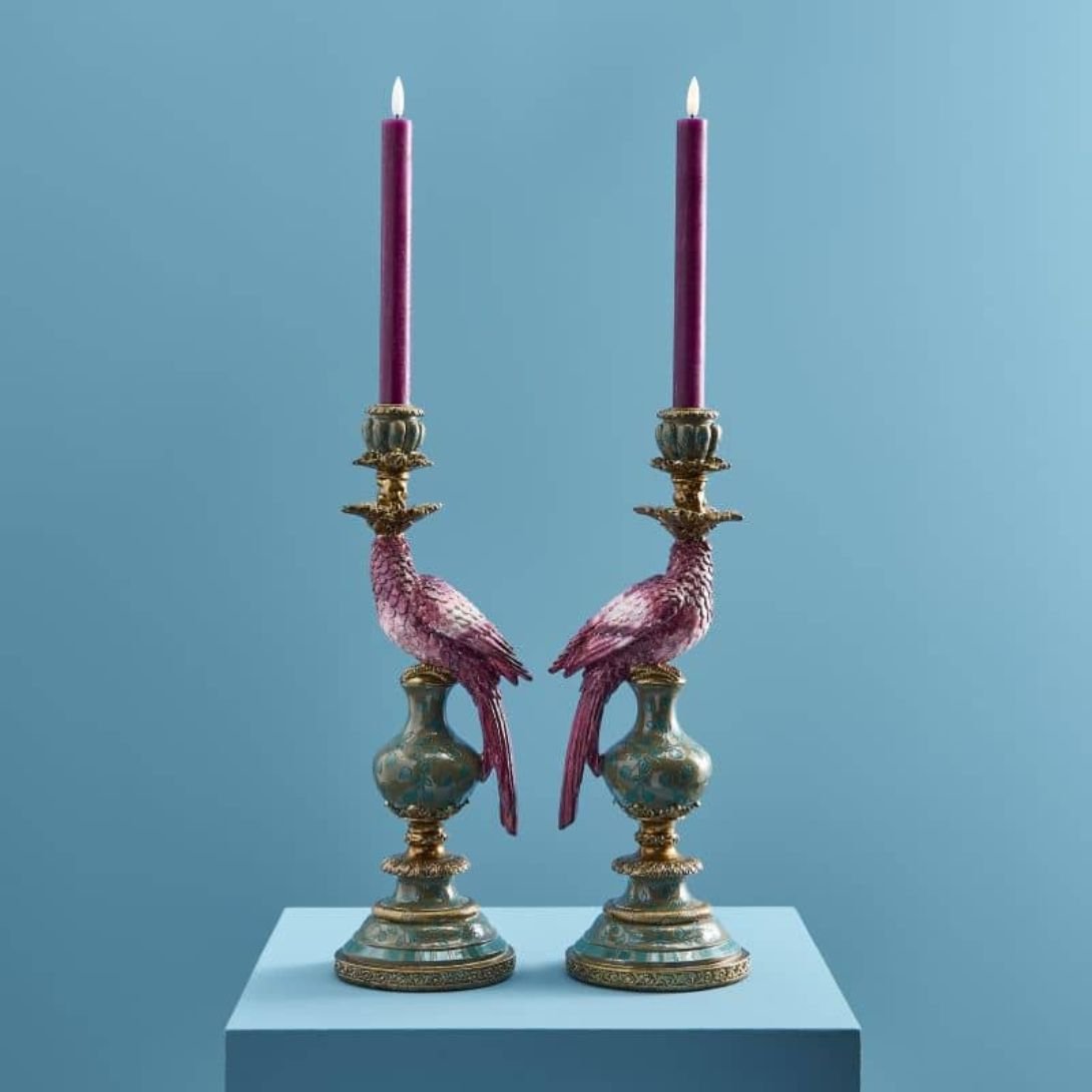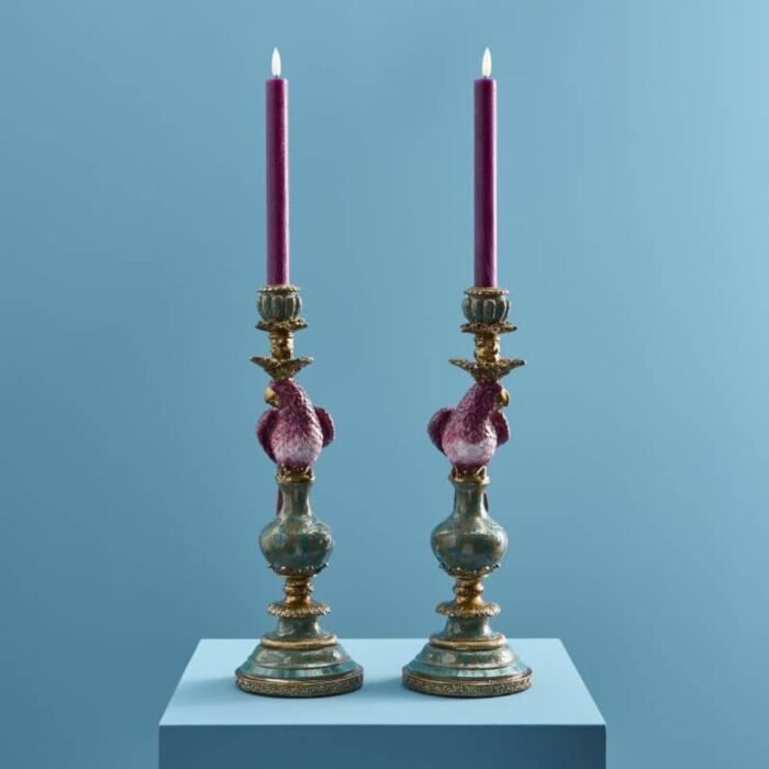Perfect as a statement piece, a quirky collectible, or a thoughtful gift, these pink and green parrot candle holders are sure to enchant anyone with a love for bold, beautiful home décor.