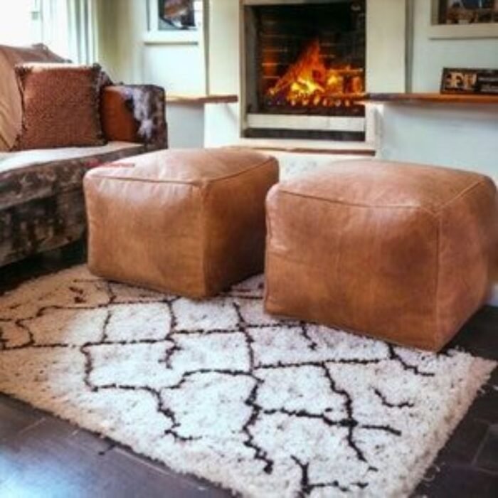 Be the first to review “SET OF 2 SQUARE POUFS LEATHER MOROCCAN OTTOMAN” Cancel reply