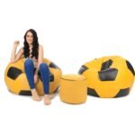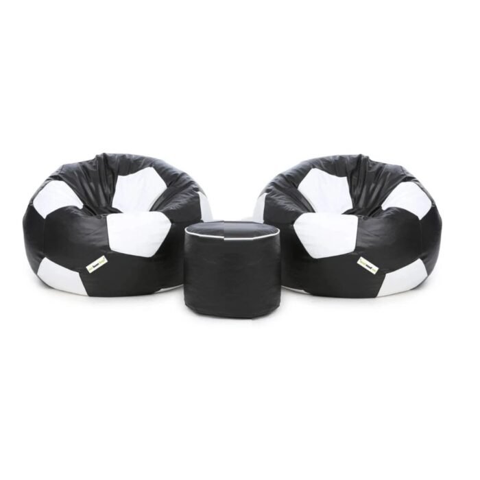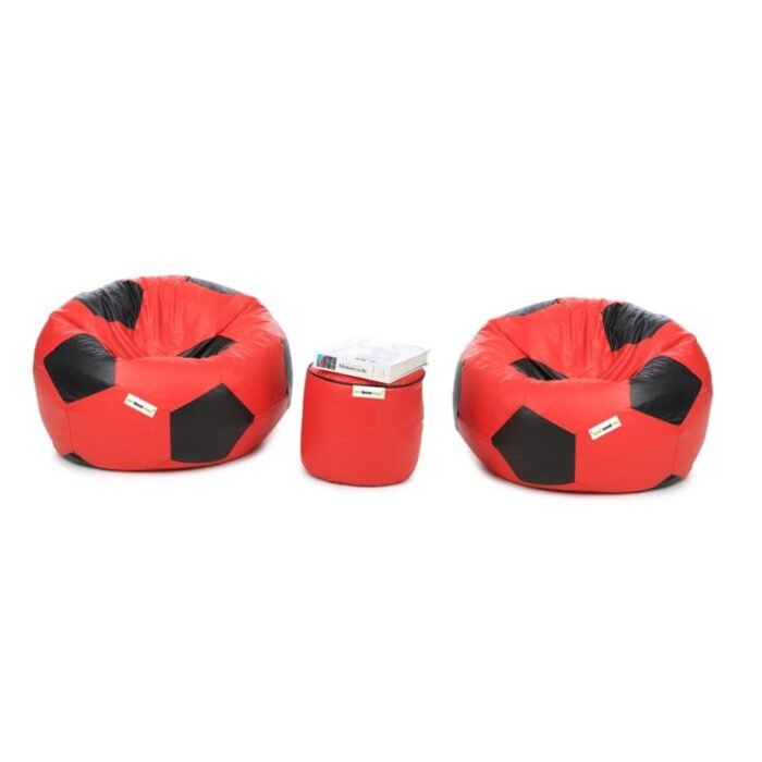 SET OF TWO FOOTBALL BEAN BAGS AND STOOL