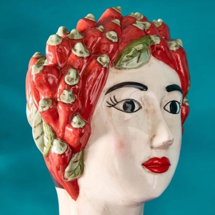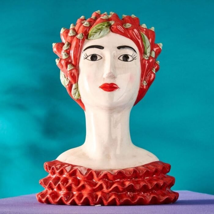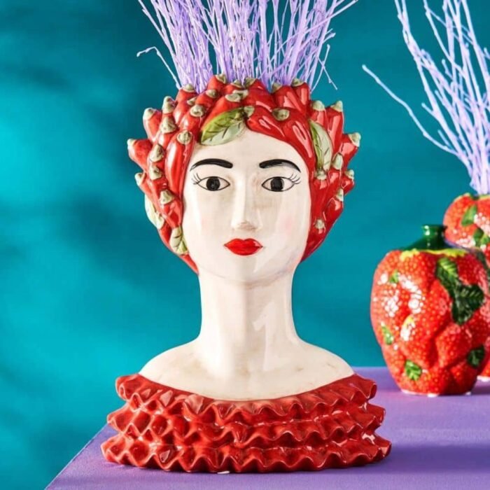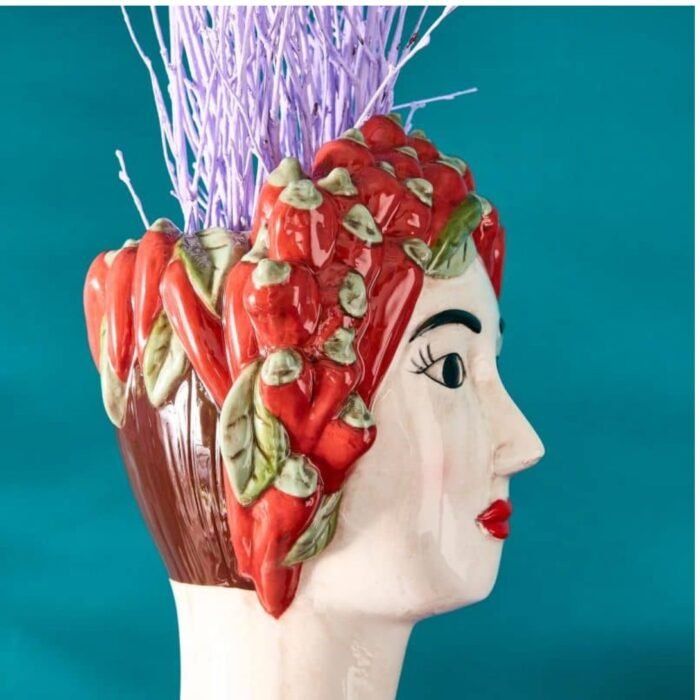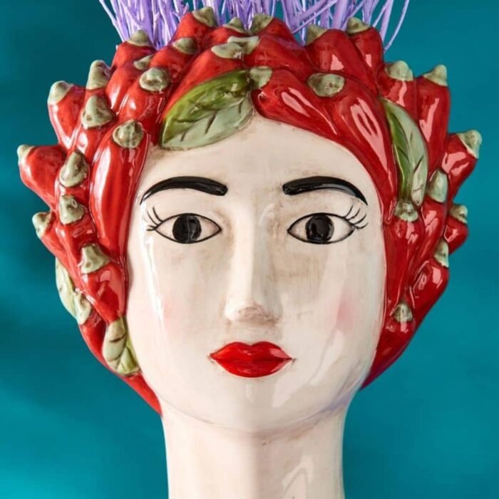 With its expressive features and bold colors, the Chili Lady stands as both a cultural symbol and an eye-catching décor item. Inspired by traditional Sicilian “teste di moro” busts, it brings an exotic, story-rich presence to interiors that crave personality and flair.