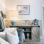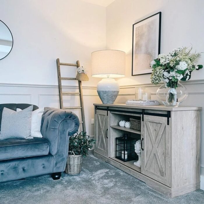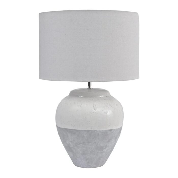 A white linen shade crowns the base, offering a clean, neutral contrast to the grey. This combination creates a fresh, timeless look that blends seamlessly into both modern and traditional interiors. The unfussy design ensures effortless styling, making it a versatile choice for various rooms.