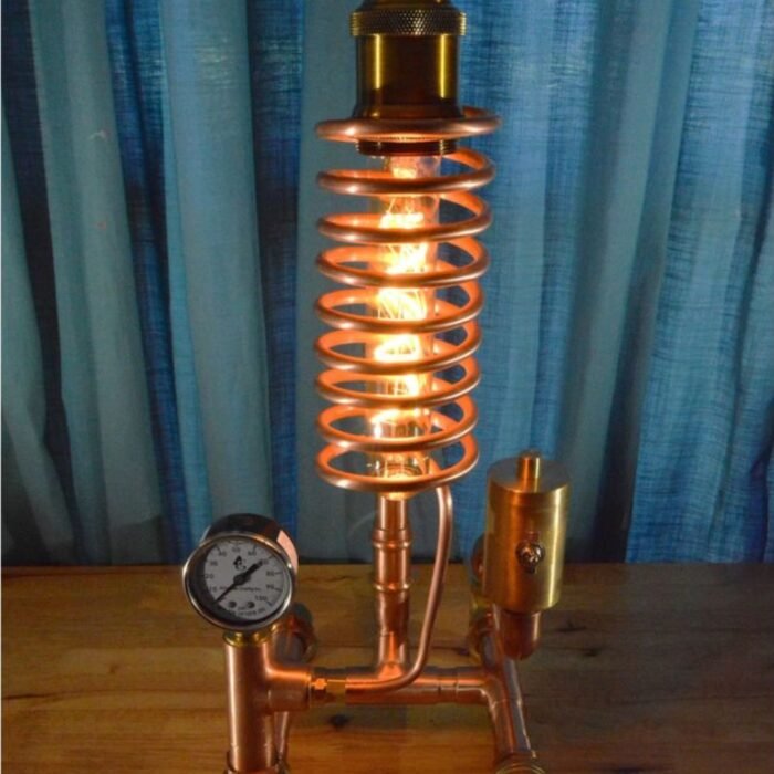 High-Quality Copper Construction: Made from Type L copper pipe, this lamp features a combination of copper and brass fittings, with a 1/4 inch copper coil that creates a striking steampunk aesthetic.