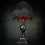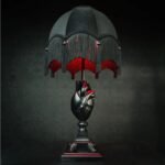 • Baroque Lampshade Option – Includes the iconic ‘Ursula’ shade in black velvet with 4-inch fringe and tassels. Lined with red fabric for a subtle crimson glow