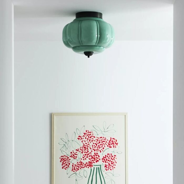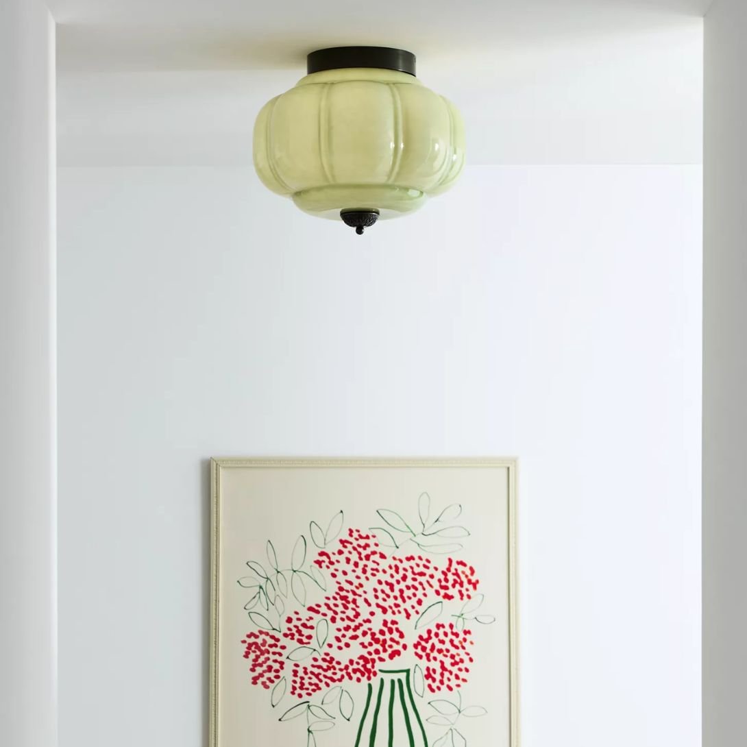 THE ELOISE SCALLOP MILK GLASS FLUSH MOUNT CEILING LIGHT GREEN BLACK