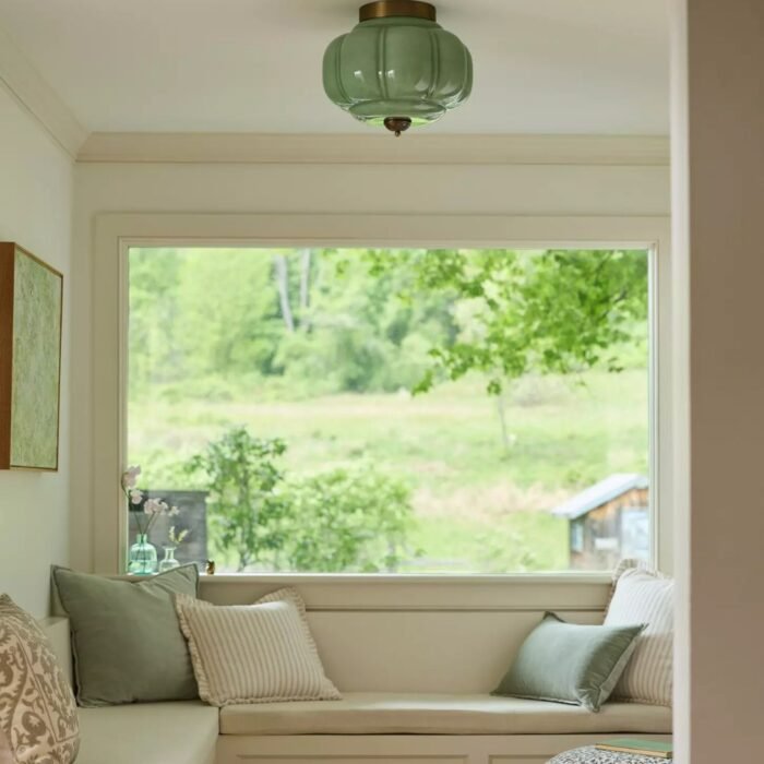 THE ELOISE SCALLOP MILK GLASS FLUSH MOUNT CEILING LIGHT GREEN