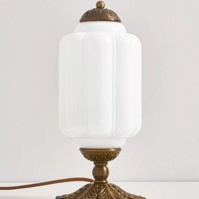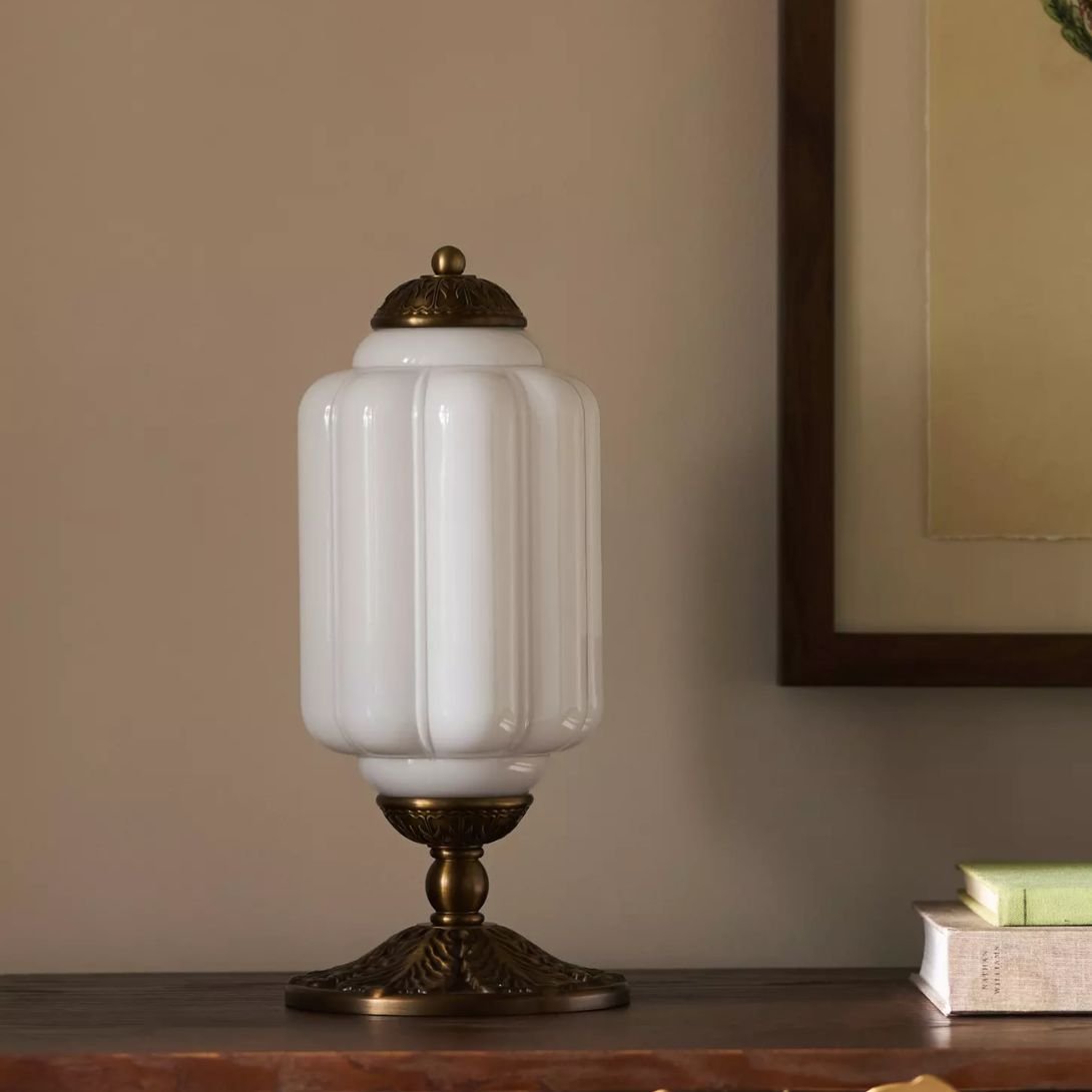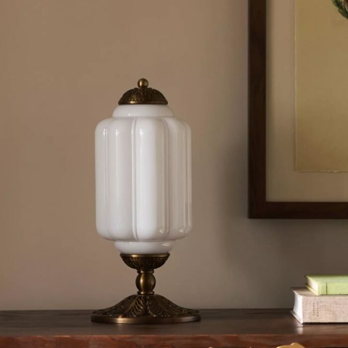 Bring timeless elegance to your home with this vintage-inspired table lamp. Featuring a scalloped milk glass shade and an oiled brass base, it delivers a soft, ambient glow with a delicate, feminine touch. Ideal for bedrooms, reading nooks, or side tables, it adds warmth and character to any room.
