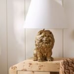 Exclusively at Anthropologie, this lamp is crafted from polyresin and finished in antique gold, giving it a vintage-inspired appeal with rich detail and texture. The sculpted dog base adds character, while the included polyester fabric shade brings softness and balance to the design.