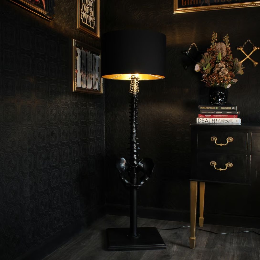 Crafted by The Blackened Teeth, this iconic Spine Floor Lamp is born from the vision of two artists who embraced the beauty of gothic interiors, bones, and human anatomy. It stands as a tribute to the art of darkness—illuminating the beauty found in the macabre.